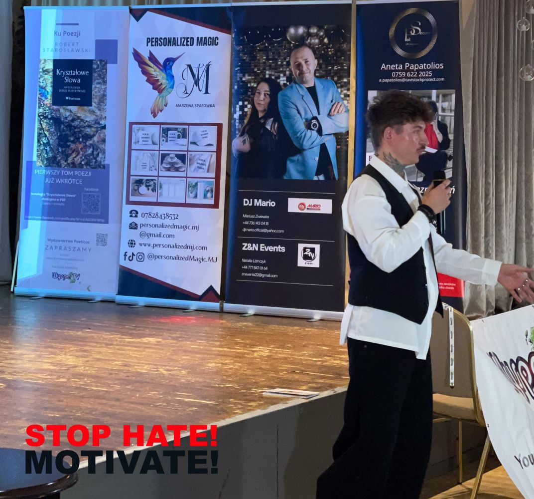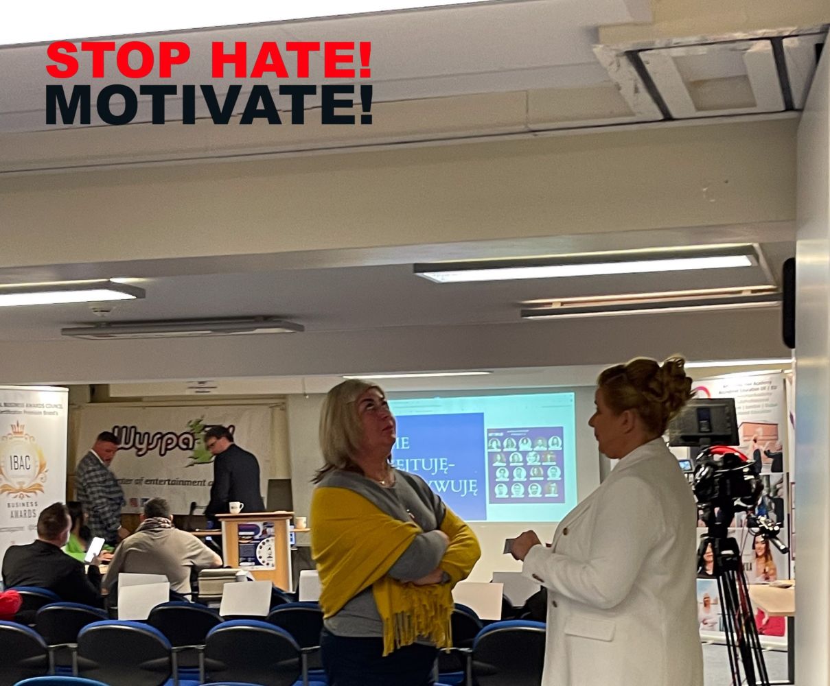 We want our message to reach an ever-growing audience, encouraging reflection and a zero-tolerance approach to such destructive actions stemming from misinformation and attempts to undermine trust. These events made us realise the necessity of educating society about respect, responsibility, and mutual support. The Stop Hate! Motivate! A conference in the UK was created to firmly oppose hate speech and emphasise that such behaviour cannot be tolerated in any environment—private or professional.