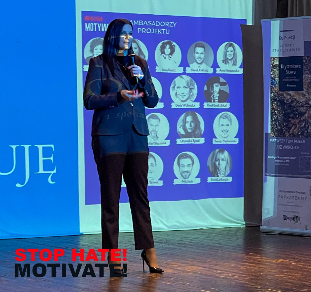 Edyta Ozarek passionately engages in social activities, particularly in the area of countering hate speech. Her involvement in the "STOP HATE! - MOTIVATE!" campaign is a natural extension of her mission to promote positive values and build mutual respect in society.