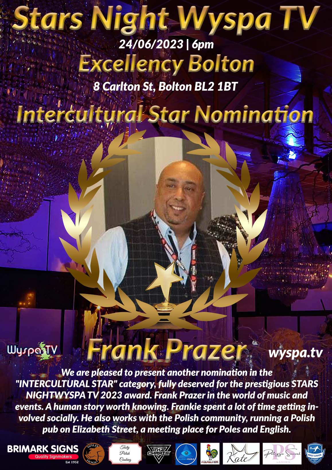 Frankie JE Prazer in the world of music and events. It is a story worth knowing. From 1999 I sang at karaoke in Stourbridge, West Midlands. In 2000 I moved to Bedford, continuing to perform karaoke at Litton Tree. At the end of 2000, I moved to Luton and started singing semi-professionally. I have participated in three 24-hour singing marathons and organized two 26-hour marathons for the NSPCC and Keech Hospice, raising thousands of pounds. I organized two karaoke competitions at the Norman King in Dunstable (2006-2007), performed with Stars in Your Eyes finalist George Anthony (2005-2007) and in a pantomime and murder mystery with the Clifton Players (2006-2007). I also performed in two musical shows for the charity Bed Scarf and had numerous solo appearances in Luton and Dunstable (2000-2009). From 2009-2011, I was event project manager for Luton Love Music Hate Racism, opposing racism and fascism from EDL. In addition, I co-founded Luton In Harmony with Luton Borough Council - a volunteer group promoting Harmony among cultural diversity, launched in January 2010. My responsibilities included: fundraising, market research, cooperation with clients, budget management, organization of locations, catering, first aid, coordination of suppliers, marketing and sales of exhibition space and tickets, posters and solving current problems. Luton in Harmony aims to celebrate the community's diversity and unity and build a positive image of the city. We encourage people to wear a badge and sign a card, declaring their pride in belonging, working with people of different backgrounds, and promoting their beliefs in a spirit of peace and Harmony. Visit lutoninharmony.co.uk. In 2010, I received the Luton in Harmony Award for Community Cohesion from the Bedfordshire Community Awards. In May 2012, I helped open and run the first Polish pub in Luton, which became a meeting point for the Polish community. I was also a business manager for Blujeanz Records and Heritage Associates, managing artists such as Clint Eastwood, General Saint and Aisling O'Reilly. Blujeanz has become a significant feature of the Love Luton Festival, with over 250 artists on ten stages over three days. In July 2012, Aisling O'Reilly performed at the Olympic Village in London. In 2013 I decided to leave Blujeanz Records to start my own company, Easy Entertainments, with over 25 artists performing nationwide. In 2013, I was nominated for Community Business Person of the Year at Luton Best Awards and Luton Community Awards. In 2014, I was nominated for Best TV Presenter for Sunday Night Live, an interactive radio and TV show that featured local and international artists. In addition, tropical FM TV station won the best interactive TV station award at the Black Entertainment Film Fashion Awards gala. Nominated for Community Person of the Year at the 2014-2015 Luton Community Awards and for the 2015 Outstanding Achievement Award at the Luton Best Awards. The 2011-2015 Luton Best Awards engaged my artists to perform at prestigious galas. I was the stage manager and host of Luton Mela, a South Asian festival from 2013-2015 that drew 25,000 people 2015. I started the We Shall Overcome Luton project with two others - a concert against homeless austerity and a local food bank opposing government cuts. The show lasted 12 hours and raised a lot of money. Below is a short article written by Tony Hendrix of Luton At Large and Internet Magazine, read by over 300,000 people. Frankie Prazer, who has devoted much time and energy to help improve Luton, is leaving the city for the West Midlands. Frankie has been part of many significant events in Luton over the years. He was involved in "Love Music, Hate Racism", "Luton In Harmony", and "Love Luton" in 2012. It organized various multicultural events such as Batighor Luton, Boishakhi Mela and Luton Mela. He also collaborated with the Polish community, running a Polish pub on Elizabeth Street, which became a meeting place for Poles and English. Frankie introduced Tropical FM TV to many events in the city and often acted as a compere at charity events. Nominated for numerous awards, it will be a massive loss to Luton's diverse, multicultural community. Frankie said: "It's been an unforgettable time in Luton, and I will continue to support the city even when I'm far away. Luton will stay in my heart, but it's time to move and settle. Thank you for the opportunity to do what I've been doing, and no, I'll forget it." Frankie will be remembered for his dedication and commitment to the city. The promoter of all-around events in Luton, Dunstable, Beds and the West Midlands. In 2016, I started working with Kamila Poczetek and Monika Sedlak as part of WOŚP Redditch. I also founded the groups We Shall Overcome Dudley, and The Great Get Together Dudley. From 2018 to 2021, I organized the first Black Country Multicultural Day, which celebrates the cultural diversity of the Black Country through the music and dance of different cultures standing side by side in peace and harmony. I also helped organize a sizeable Polish event in Worcester. In Luton in 2019, I helped organize the Polonia Festival, Diwali in Luton and Luton Mela. In 2022, I organized a fundraiser for Ukraine, WOŚP Luton, East Fest - a celebration of the Eastern Bloc countries living in Bedfordshire. I also collaborated in organizing the St. Patrick's Festival in Luton. I call myself Mr Multicultural because I believe we all bleed the same colour and share many common values.