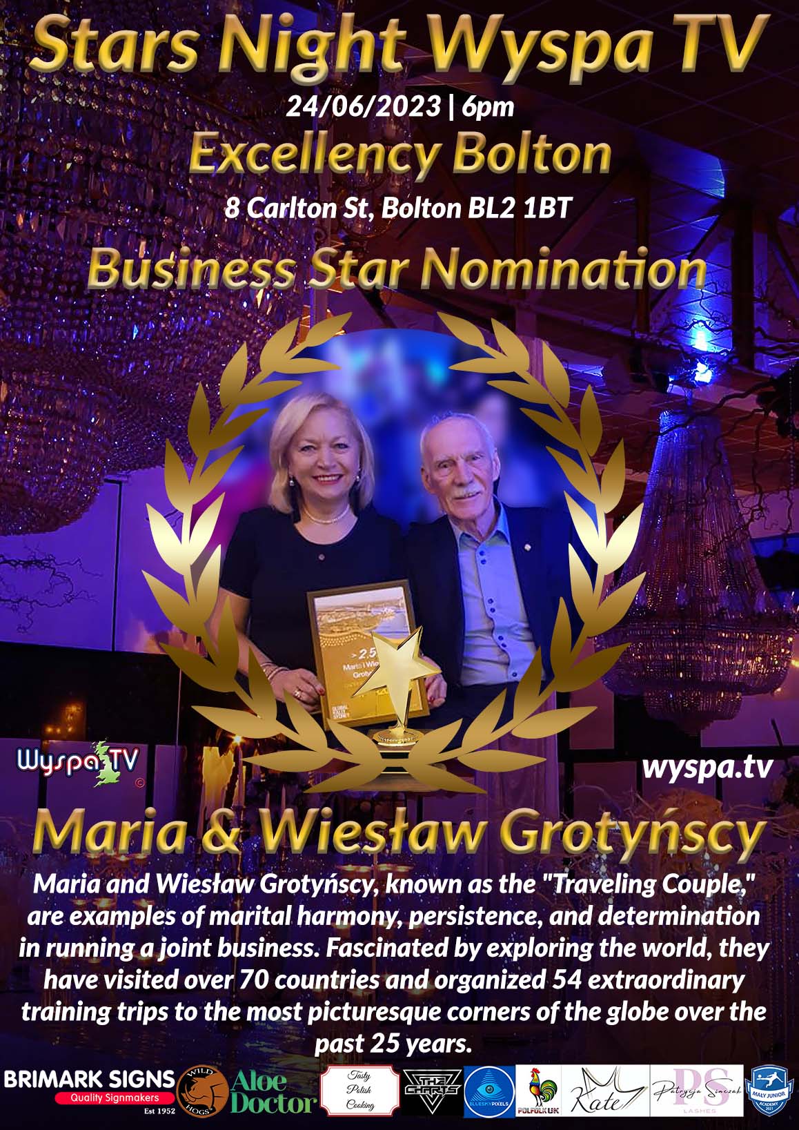 This is the next nomination in the "BUSINESS STAR" category for the prestigious Stars Night Wyspa TV award. We direct it to an amazing couple. They say that home is not their whole world, but the whole world is their home. You have to get to know them.