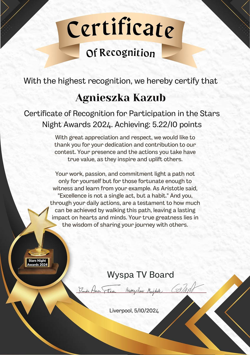 Katarzyna Zimna, known for her invaluable assistance to those in need and her active engagement in the local community, has been nominated for the prestigious Stars Night Awards 2024 in the Leader Star category. This nomination is a testament to her relentless effort and dedication to helping others.
