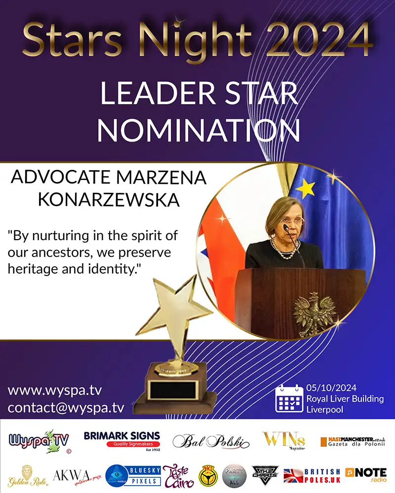 Advocate Marzena Konarzewska is a distinguished figure whose commitment and activities on behalf of the Polish community in the United Kingdom deserve special recognition. Her nomination for the Stars Night 2024 award is a testament to her enduring passion and countless hours of work dedicated to helping others.