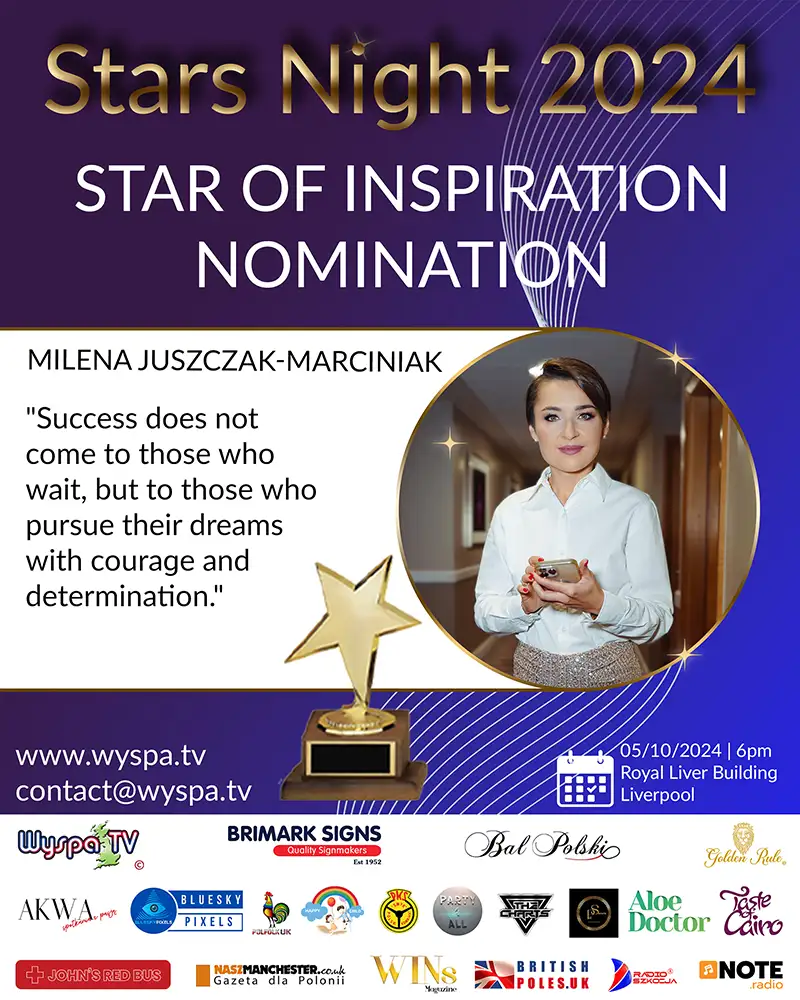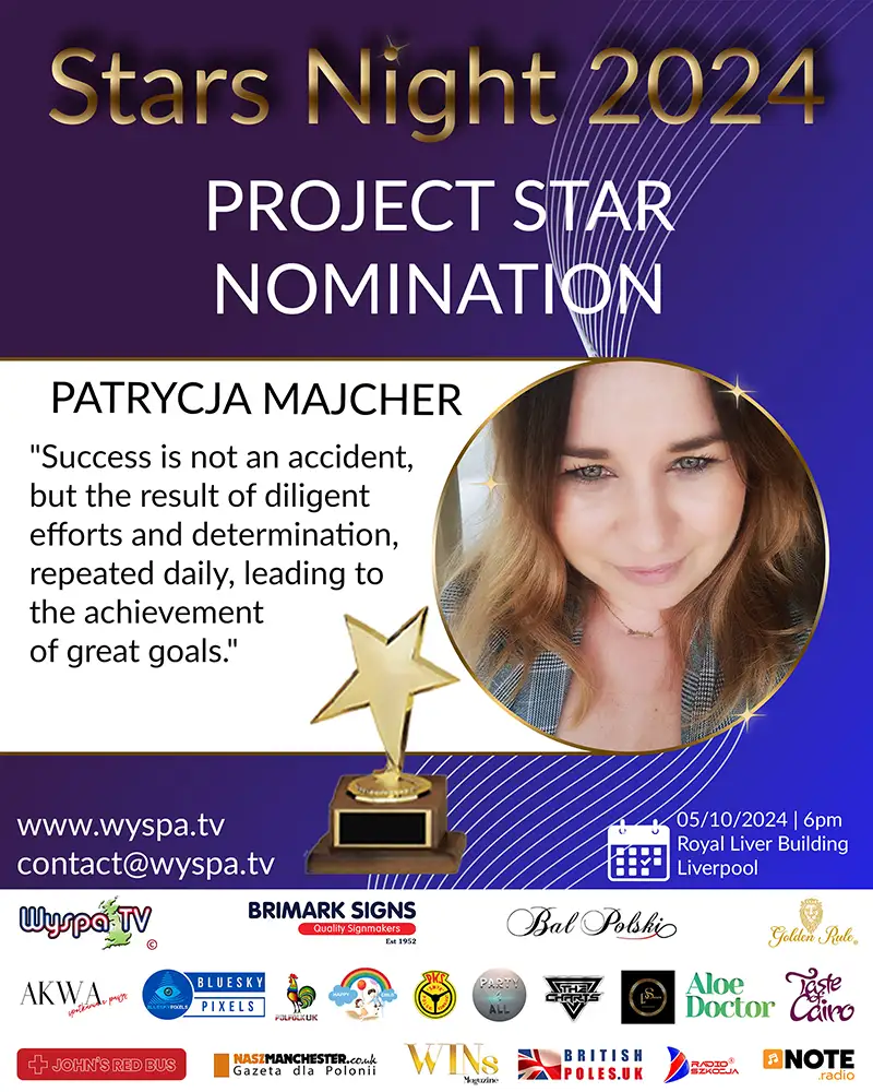 Katarzyna is a prominent figure in the Polish community activities in Great Britain, having been nominated for the prestigious Stars Night 2024 award in the PR Star category. Her ceaseless commitment to promoting Polish culture, supporting Polish business, and charitable activities deserve special recognition.