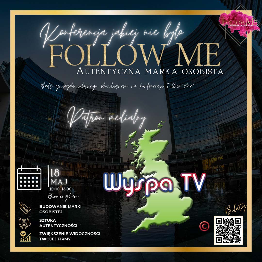 18 maja 2024 w Birmingham odbędzie się wydarzenia skierowanego do polskiej społeczności w Wielkiej Brytanii - Konferencja Follow Me! Autentyczna marka osobista, objęta patronatem medialnym przez WYSPA TV, ma na celu nie tylko integrację Polonii, ale również promocję działań i inicjatyw Polaków na Wyspach.