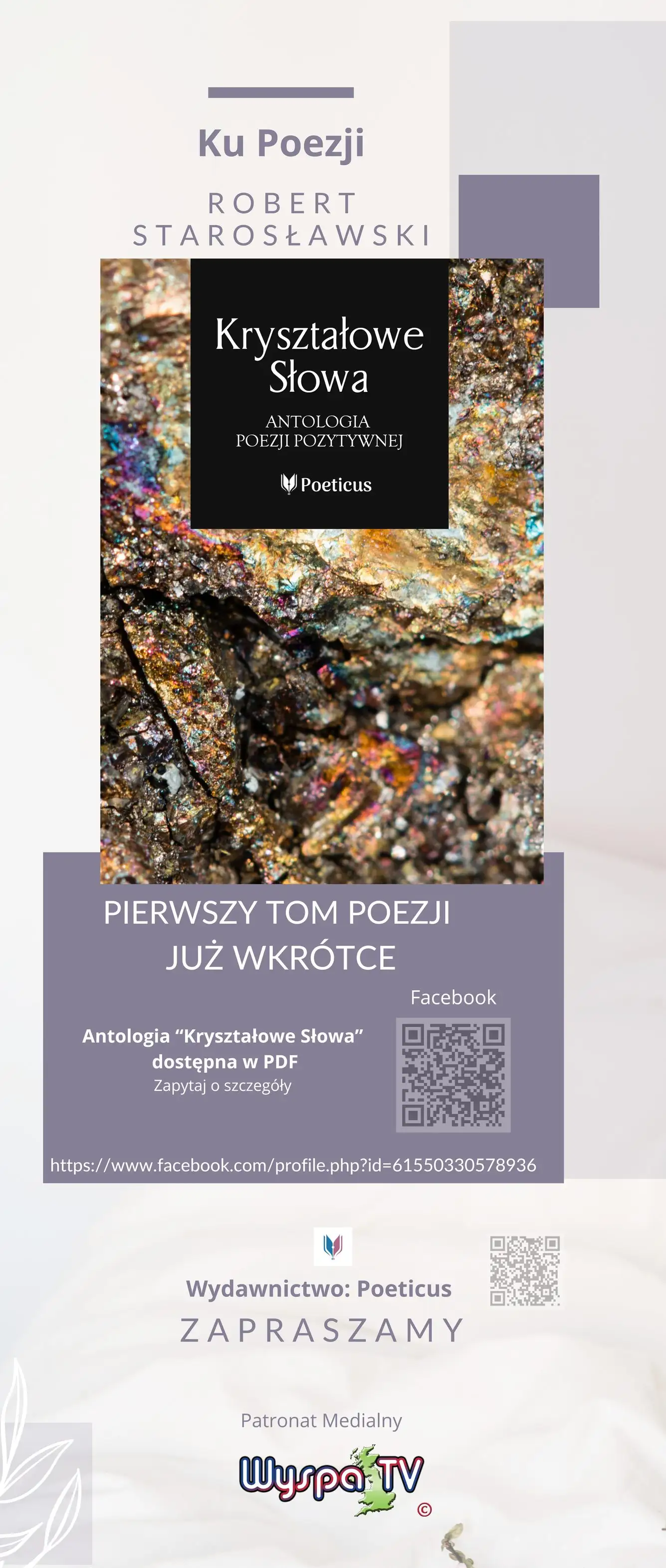 Robert Starosławski's legacy is a great inspiration to Edyta, motivating her to pursue her own creative endeavors with passion and perseverance. It's worth mentioning that Robert Starosławski's poetry collection is supported by WYSPA TV, which serves as the media patron of this project. With this support, the initiative has the chance to reach an even broader audience and contribute to the promotion of poetry and literary creativity in a wider context.