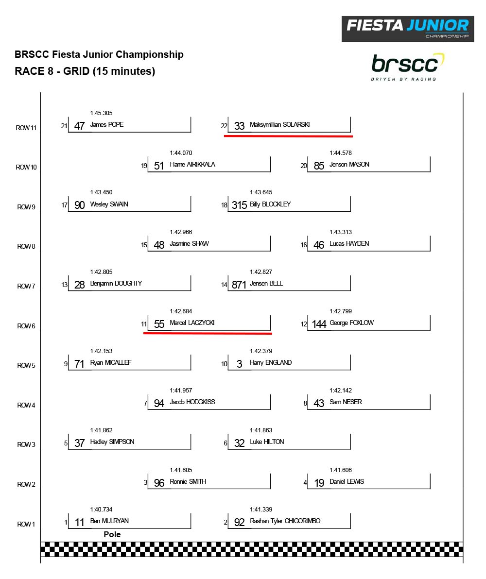 Solarski is a young and ambitious driver with immense potential. He showed in his debut that he could fight against experienced rivals. In Snetterton, he took second place in the first race, losing only a tenth of a second after a five-second penalty for Luke Hilton. However, this is only a preview of his abilities, as Solarski still has much to prove.