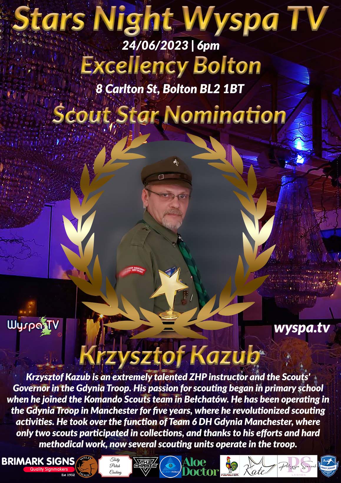 Therefore, it is unsurprising that Robert is the face of the first edition of Stars Night Wyspa TV 2023. For the Wyspa TV team, he is irreplaceable, and this nomination underlines the admiration and great appreciation for his talents, skills and commitment. Robert S. Jankowski is a character who inspires, motivates and delights. A real treasure for every event.