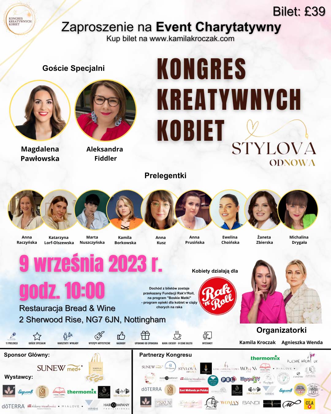 Wszystkie informacje na temat prelegentek, gości specjalnych, partnerów i wystawców, zakup biletu oraz harmonogram wydarzenia dostępne na www.kamilakroczak.com.